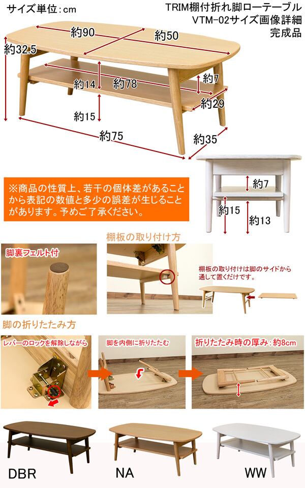TRIM 棚付き折れ脚ローテーブル DBR/NA/WW