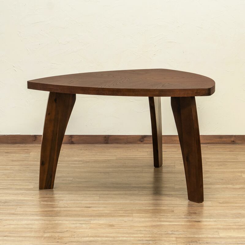 緩やかな三角形天板、重厚な木目柄天板となっています