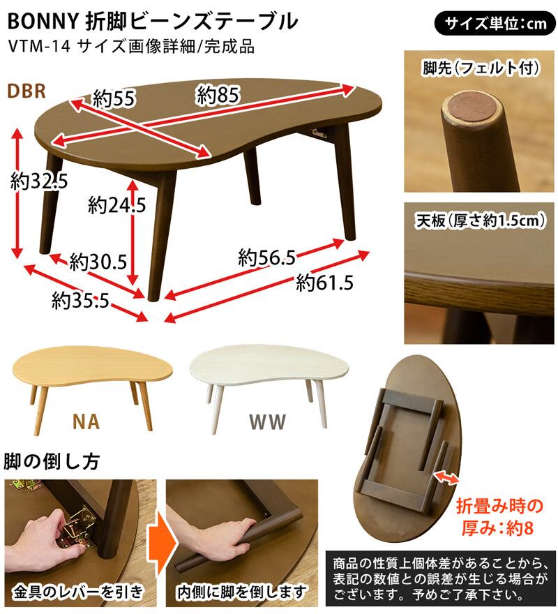 BONNY 折れ脚ビーンズテーブル DBR/NA/WW
