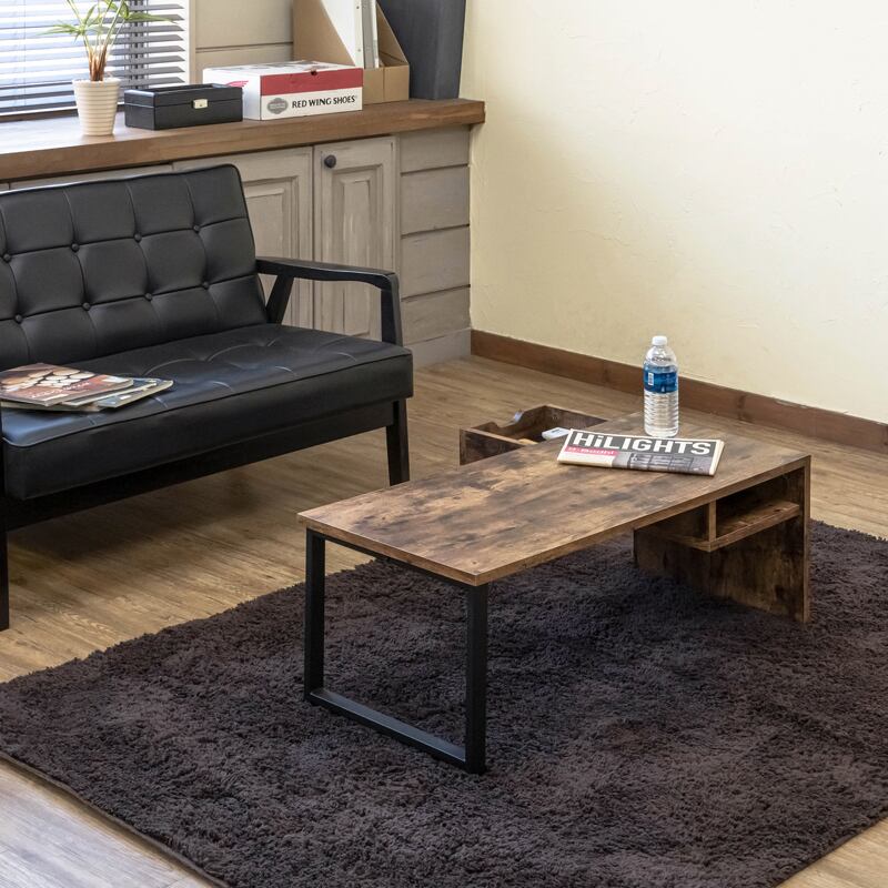 木材とスチールで人気のレトロモダンスタルに仕上げたローテーブルです