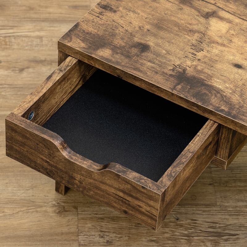 木製の脚側に引出しが付いています(内寸:幅22.5×奥行34.3×深さ6.3センチ)