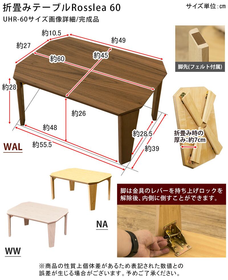 Rosslea 折り畳みテーブル 60 NA/WAL/WW