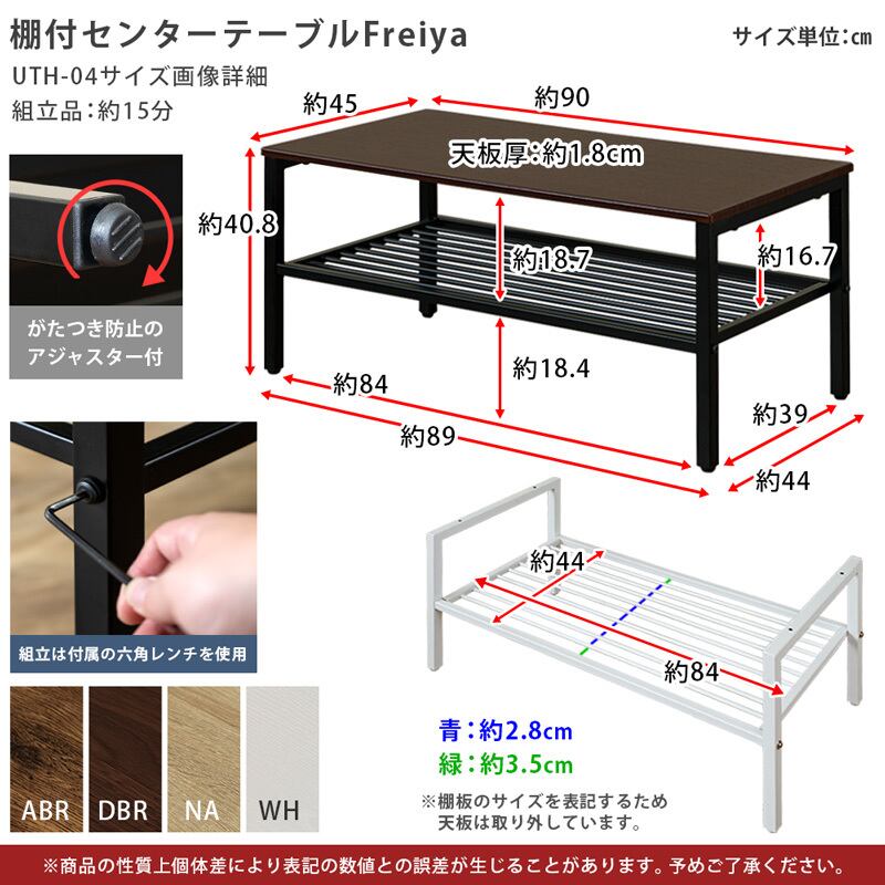reyia 棚付きセンターテーブル ABR/DBR/NA/WH