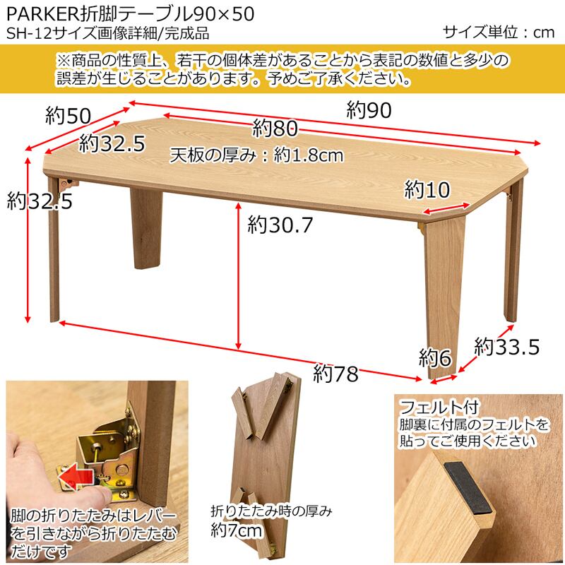 PARKER 折脚テーブル 90×50 BR/MWH/NA/VBR/WH