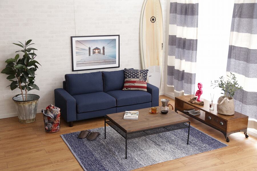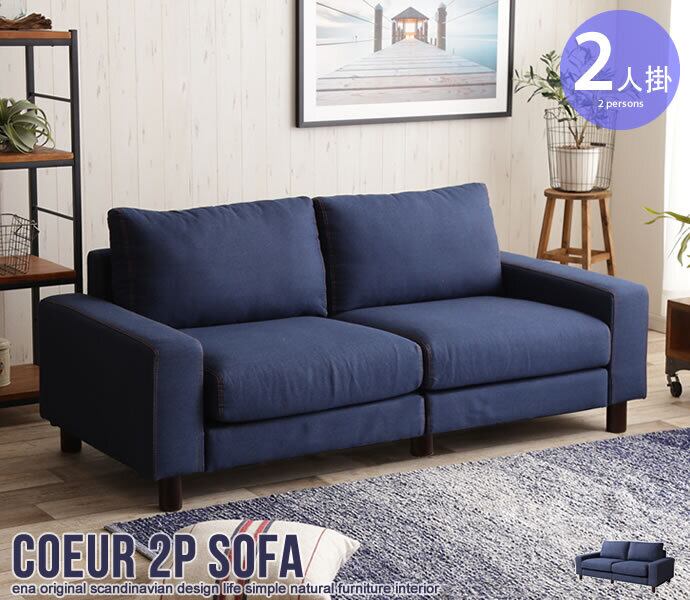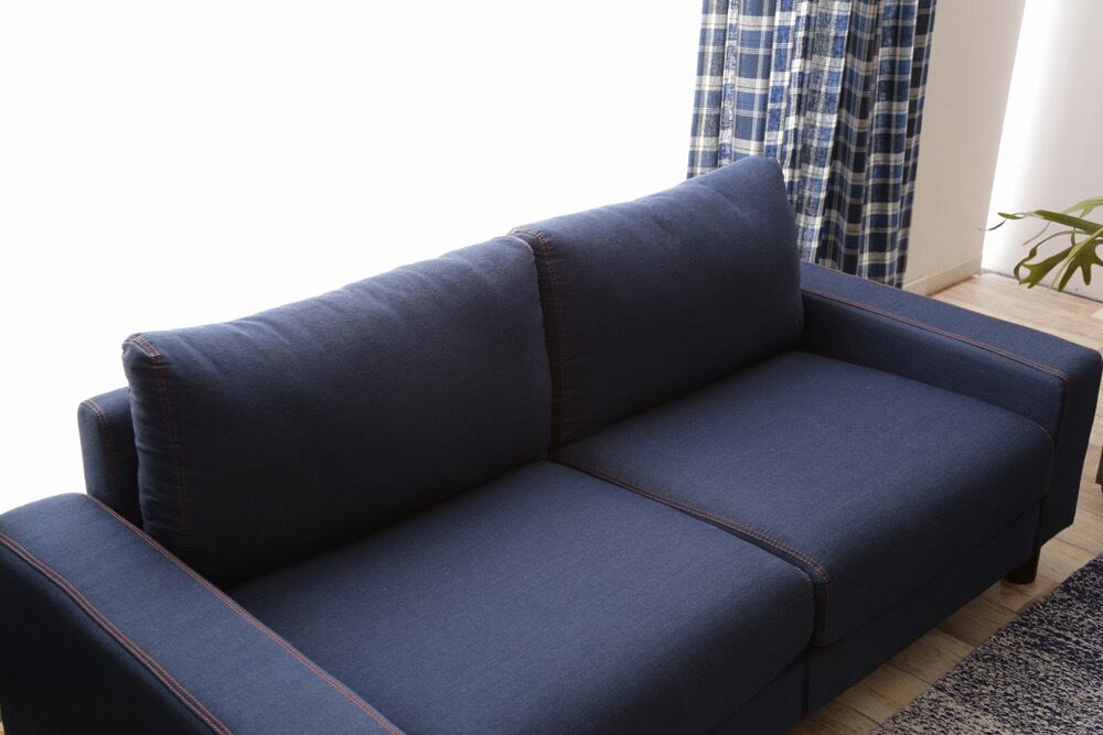 爽やかで鮮やか、清潔感のあるデニム生地で仕上げたカジュアルなデザインの2人掛ソファ