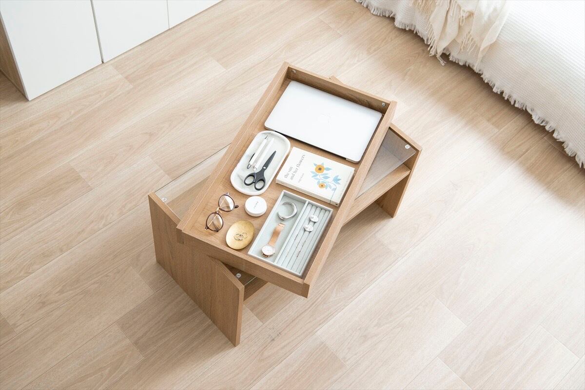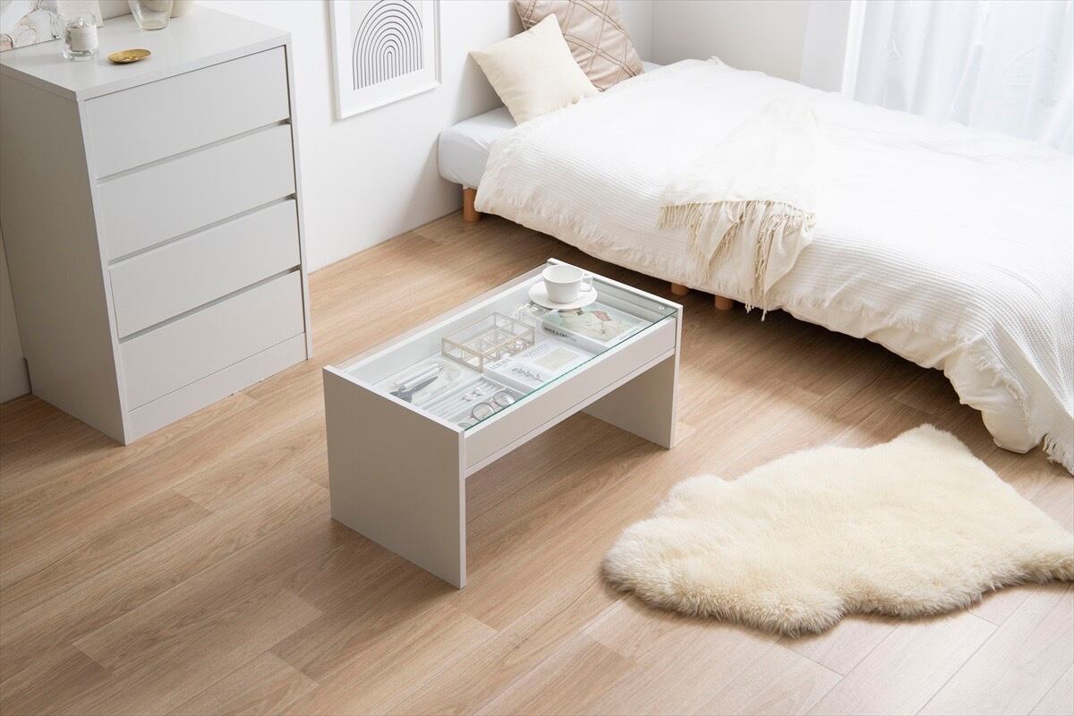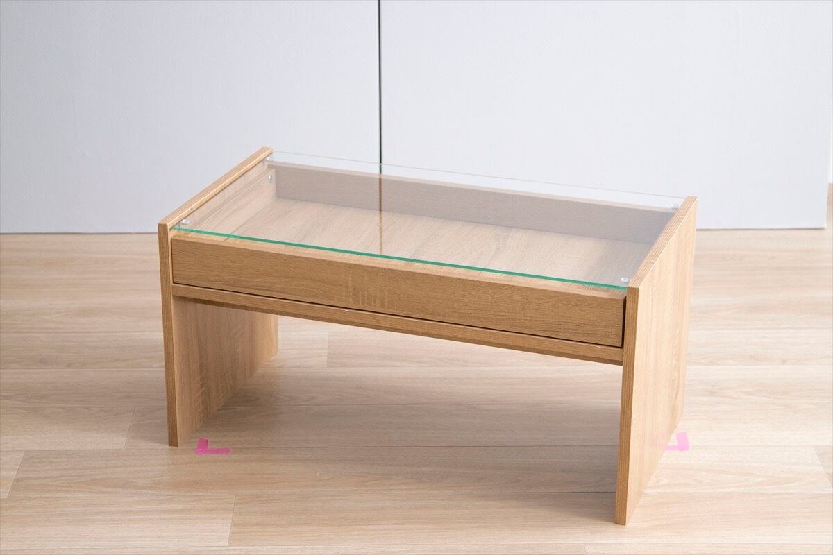 【耐荷重】(棚板/引き出し下)約5kg、(ガラス天板)約3kg、(引き出しトレー)約5kg